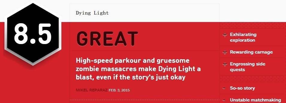 尽管《消逝的光芒》初期需要你鬼鬼祟祟地躲避丧尸,但随着游戏进程的发展,它逐渐变成了一场挑战运动极限、享受虐杀快感的血腥盛宴。该作的主线剧情并不出彩,但是支线任务却引人入胜,有趣的任务为玩家提供了足够的乐趣,让《消逝的光芒》成为了最精彩的开放世界丧尸游戏之一。